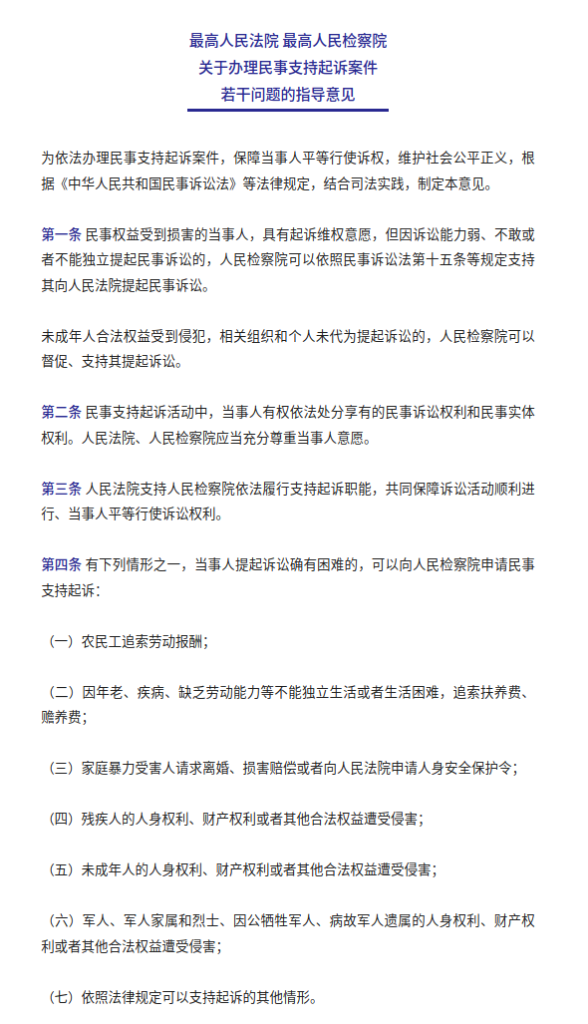 最高人民法院、最高人民检察院近日联合印发关于办理民事支持起诉案件若干问题的指导意见,并于3月24日公开发布。