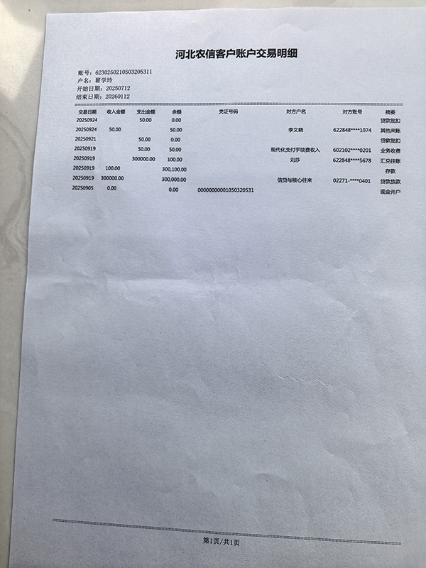 近日,邯郸魏县一女子翟学玲称:“因三个孩子上学及结婚等家庭开支急需用钱,于是通过贷款中介王某、徐某向邯郸市农商银行柳林桥支行借款30万元。2025年9月5日用一百元现金开户办理了一张银行卡用于该笔银行贷款,于同月19日银行放款到账,到账同时,30万元被银行和贷款中介私自转到一位名叫刘某的账户上。9月24日,又有一位叫李某某的向翟学玲的银行卡上转账50元,该50元与之前现金开户的100元全部用于银行的业务收费了。”