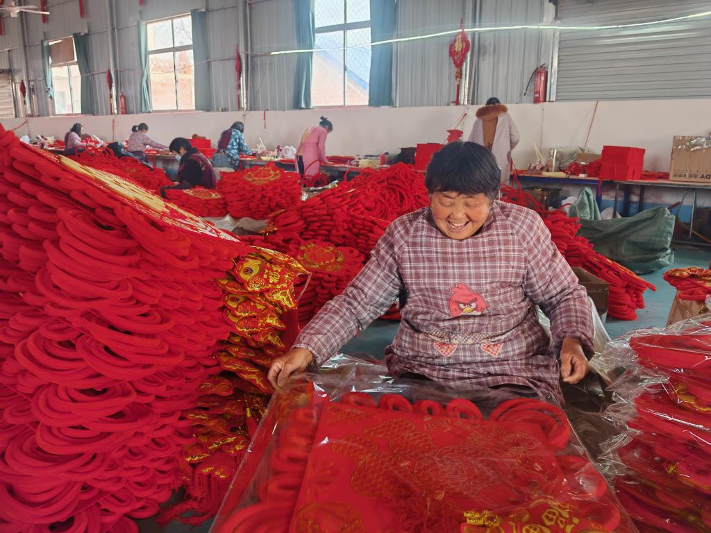 新华社郑州2月8日电(记者吴刚)春节假期刚过,河南省邓州市陶营镇王良村的工厂车间里已是一派繁忙景象。62岁的村民胡选霞手指翻飞,一根红绳在她掌心穿梭,不到3分钟便编出一枚精巧的中国结。这样的手工结,她每天能完成200多个,月收入超3500元,“比俺种几亩地挣得多哩!